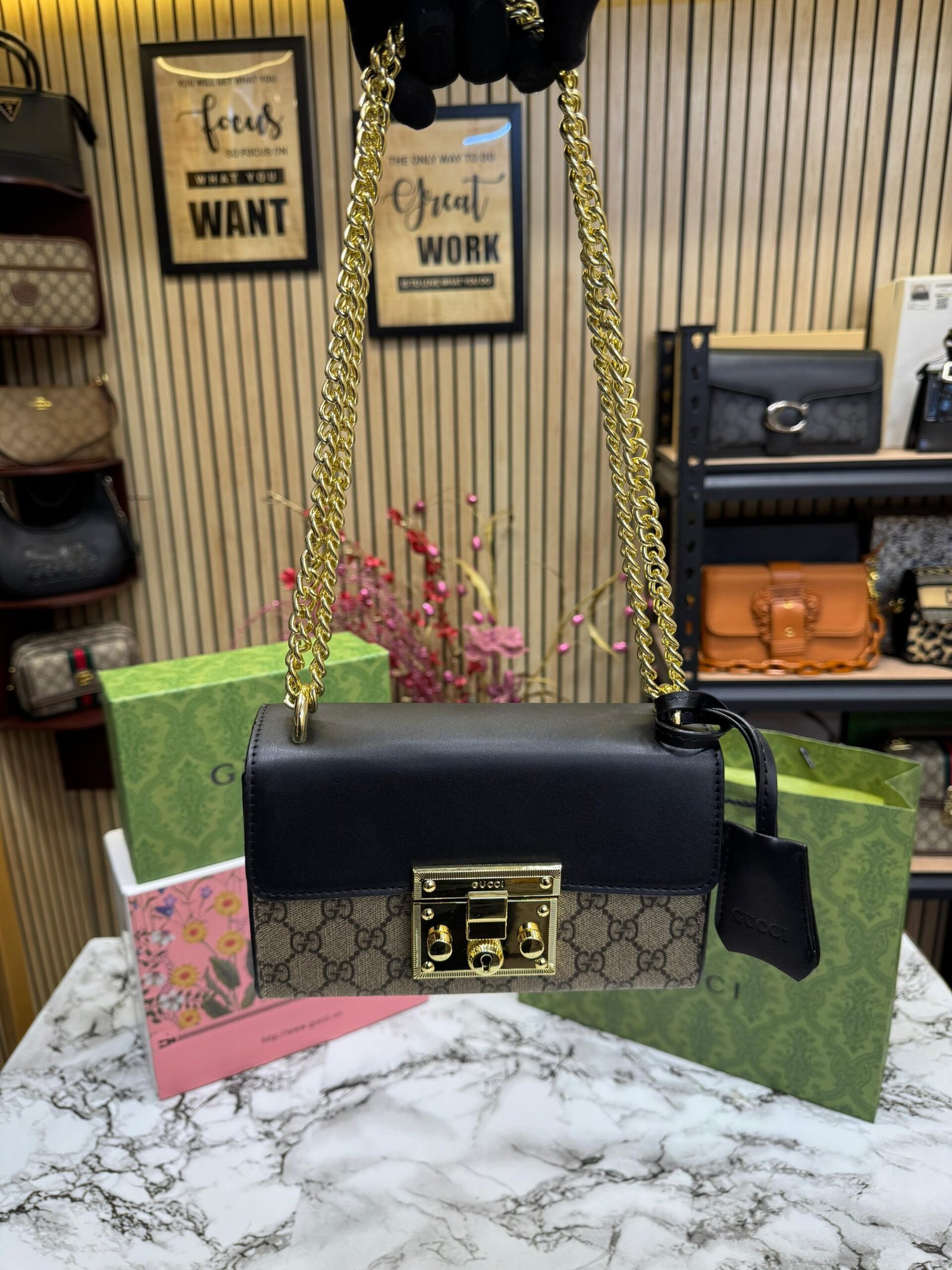 GUCCI PADLOCK ( BLACK ) WITH DOUBLE BOX PACKING